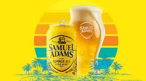 Samuel Adams Summer Ale is a 5.3% ABV American wheat ale with a light-bodied, crisp, and citrusy flavor profile, featuring a blend of orange, lime, and lemon peels. It is available seasonally from March through August, with a hazy golden color, 7 IBUs, and a subtle peppery spice from West-African Grains of Paradise.